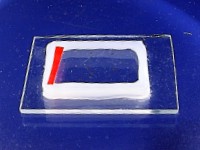 トンボの卵の発生を調べる このページの最終更新日は2005年5月3日です. トンボの卵を採卵して孵化するまでのようすと、発生を調べるとき道具や注意点などについて書いてあります.このページの卵の大きさの拡大率は同じです. 卵を入れておく容器 同じ日に産卵した卵を同じ場所においても,発生の速いもの,遅いものがあります.1卵を取り出してそれを継続観察すると発生の過程がよくわかります.(同じ容器に入れた卵でもわずかな環境の違いや個体差で,発生の速い,遅いがあるようです.)野外で採取した卵はフィルムケースなどに入れて持ち帰りますが,できるだけ早く,やや大きめの容器に移し,その後 ,さらに目的に応じた容器に移します.観察には実体顕微鏡または生物顕微鏡など,かなり拡大して見ることができる道具が必要です. 卵を1卵ずつ入れておく容器は,以前はフィルムケースの上部を切り取り,高さを1.5cmにしたものを使っていま したが,現在は下のよう自作の容器を使っています.この容器を作ってから,長期間の卵の観察は容易になりました.小さな水槽を作る時の接着剤に使ったり,ゴム長の穴を埋めたり,とにかく便利なシリコーン系充填材ですが,これを適当な大きさに切ったガラス板に細く押し出し,乾いてから上を平らに切ると出来上がりです.充填剤の厚さは2mm〜3mmが適当です.ただし厚さがあるので,普通の生物顕微鏡での40倍以上の対物レンズの使用は無理です.10倍までの対物レンズなら使用できます.しかし,この容器を使った観察や撮影には実体顕微鏡が適当です.観察する卵などを入れたのち,水をあふれるぐらい入れ,カバーガラスをかけ余分な水を吸い取ると傾けても動かないので観察しやすいものです.孵化に時間がかかっても大丈夫です. 何日も続けて観察するときにはこの容器が入る大きさのプラスチック容器に入れておきます.プラスチック容器には包装用のプチプチ?を適当な大きさに切って底に敷き水を少し入れておきます.それでも,長期間置いておく場合は時々,水が減っていないかを確認することが必要です.