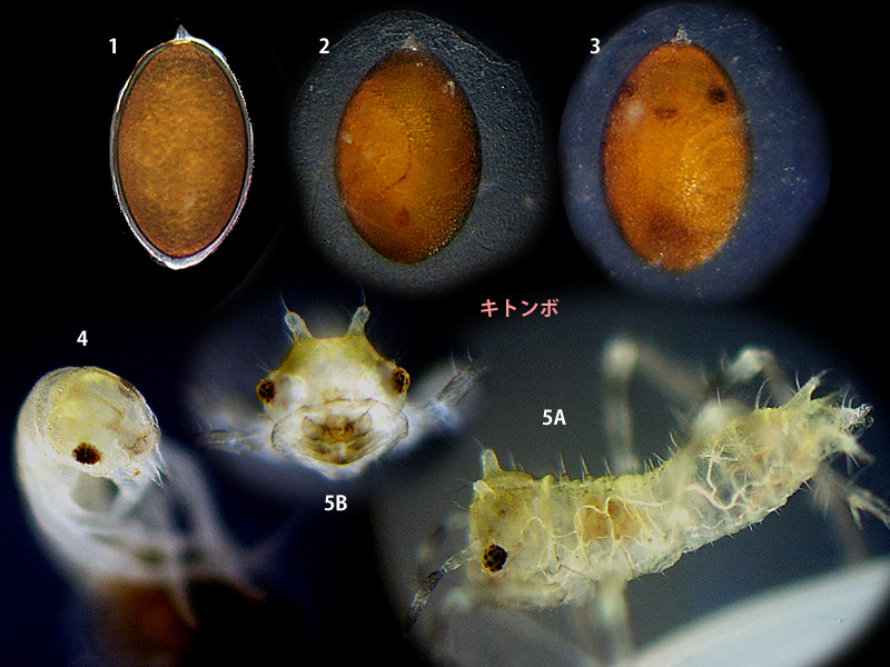 採卵の方法:あらかじめ水を入れた小容器を用意しておき,産卵中の♀を捕まえて,♀の腹端を,容器中の水につけると産卵を始めます.
