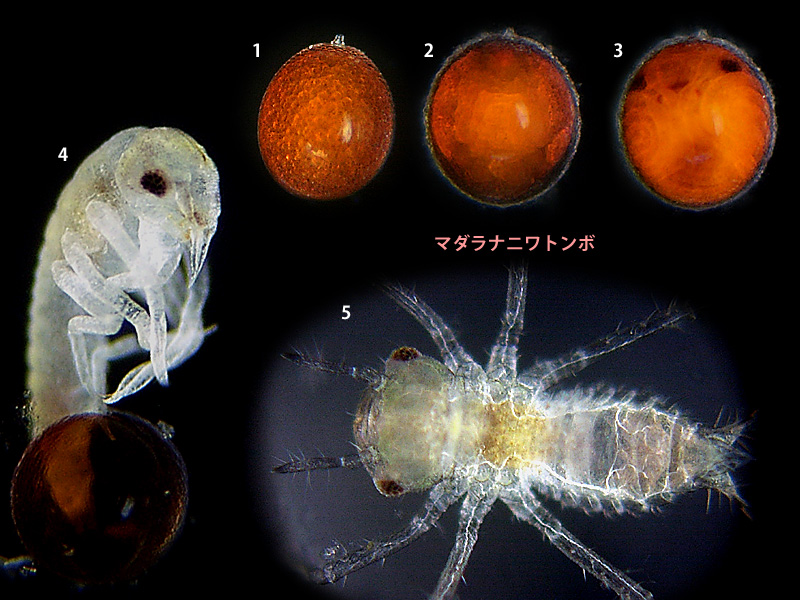 トンボ科アカネ属は次のページに分けてあります.卵,前幼虫,1齢幼虫は同じ拡大率ですので,大きさを比較できます.
