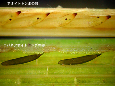 下の図の卵の大きさは他の1/2に縮小してあります. アオイトトンボ(写真 1:産卵後0日目の卵