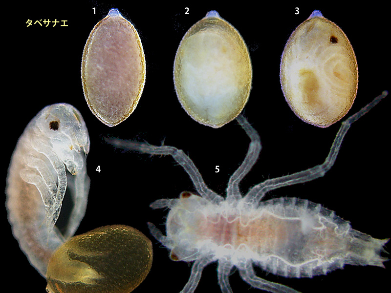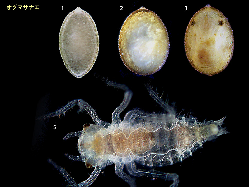 サナエトンボ科は次の7ページに分けてあります. 卵,前幼虫,1齢幼虫はすべて同じ拡大率ですので,大きさを比較できます.
