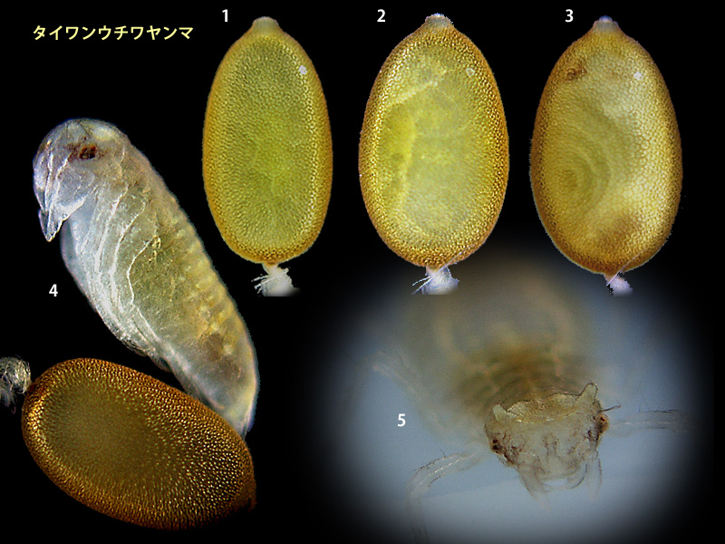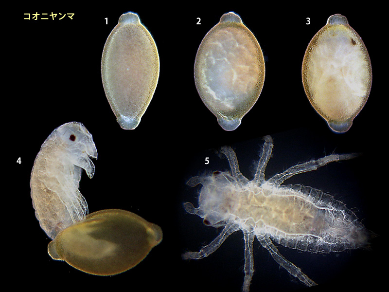 サナエトンボ科は次の7ページに分けてあります. 卵,前幼虫,1齢幼虫はすべて同じ拡大率ですので,大きさを比較できます.