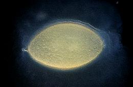 Size: Right after laying; head diameter; 0.51mm, a short diameter 0.26mm. Just before hatching; head diameter 0.58mm, a short diameter; 0.30mm. Duration of egg : The shortest duration; 8days. Average duration; 13days. @It is a little egg in Corduliidae.@Flight period is comparatively long, and durations of egg changes in temperature (water temperature) very much, too. The shortest durations was five days at August. Gelatine material is removed in the photograph though there is much gelatine material which surrounds an egg.