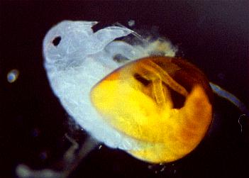 As for the left photograph, a little sand grain sticks to the jelly-shaped material around the egg. Jelly-shaped material around the egg is removed in the right.