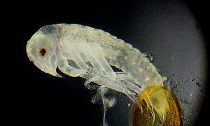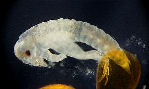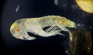 Figure11-1: Left; after laying, the 9th day Right; prolalva The period of prolalva (until it becomes 1st-inster lalva from hatching.) is about 11 minutes.