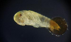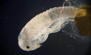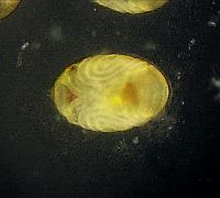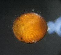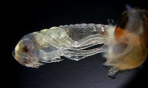 Figure11-10: Left; after laying, the 6th day Right; prolalva The period of prolalva (until it becomes 1st-inster lalva from hatching.) is about 6 minutes.
