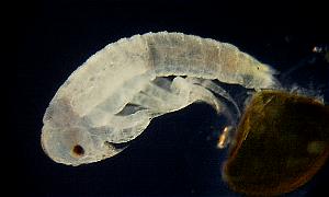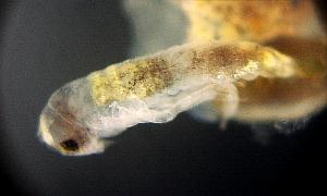 Figure11-5: Left; after laying, the 8th day Right; prolalva The period of prolalva (until it becomes 1st-inster lalva from hatching.) is about 8 minutes.