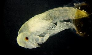Size: Right after laying; head diameter; 0.66mm, a short diameter 0.30mm. Just before hatching; head diameter 0.71mm, a short diameter; 0.37mm. Duration of egg: The shortest duration; 8days. Average duration; 12days. A female lays eggs alone in the plant and so on which floated in the surface of the water. A female lays eggs repeatedly. For that time, male guarding behavior is seen.