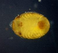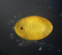 Figure11-8: Left; after laying, the 6th day Right; prolalva The period of prolalva (until it becomes 1st-inster lalva from hatching.) is about 10minutes.