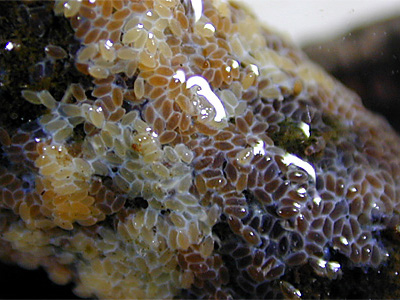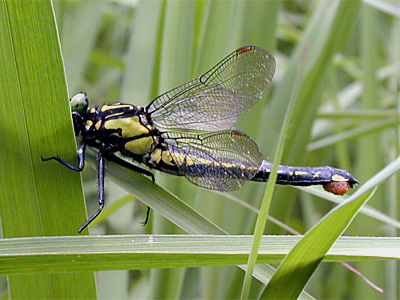 サナエトンボ科 水辺に産卵にきた♀を採集し採卵します.タベサナエ,オジロサナエ,ダビドサナエなどでは卵を次々出しますので,水を入れた小容器にとります.水辺の植物や石の上で卵塊 (らんかい:多くの卵が集まったかたまり)を出してから水面上に飛来する ホンサナエ,キイロサナエは,卵塊を出している時に捕まえて採卵します. オナガサナエ,アオサナエなど水面上でホバリングしながら,小さな卵塊を次々水面に落とすトンボは,卵が水面に達するまでに,目の細かい網などで卵をキャッチします.ウチワヤンマ,タイワンウチワヤンマは水面 にあるアオミドロ,水草などに産卵しますので,産卵後,卵の付着(ふちゃく)した水草などを採集します.