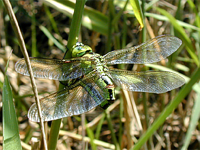 ヤンマ科 ほとんどのヤンマ科はろ紙 やティッシュペーパーに産卵します.ろ紙 やティッシュペーパーに産卵しないアオヤンマは産卵痕(さんらんこん:産卵したときに残るきずあと)がはっきり残るので産卵痕のあるヨシの茎などから取り出します.