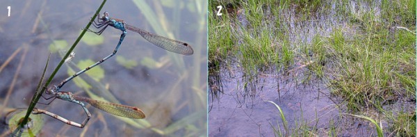 eigure11-1: @1.Oviposition of Indolestes peregrinus . 2. The inhabiting environment of Indolestes peregrinus .