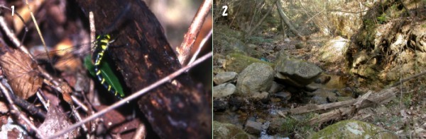 Figure12-1:1.Oviposition of Planaeschna milnei . 2. The inhabiting environment of Planaeschna milnei .