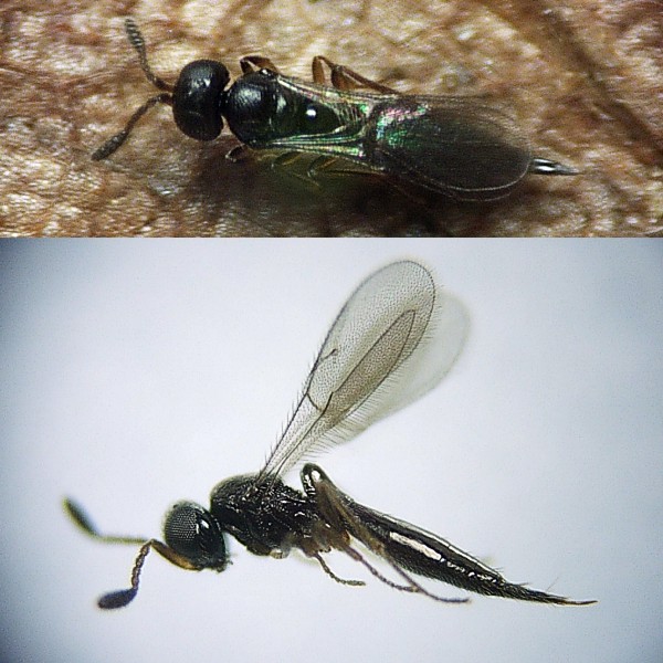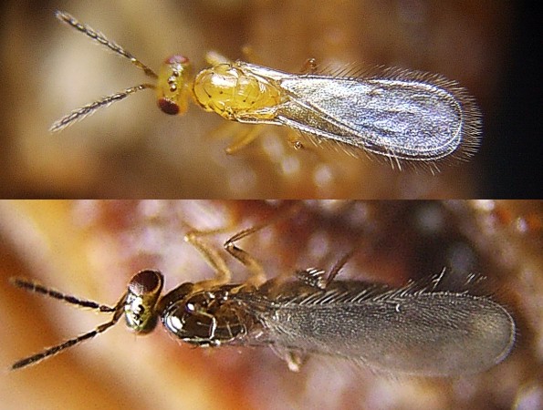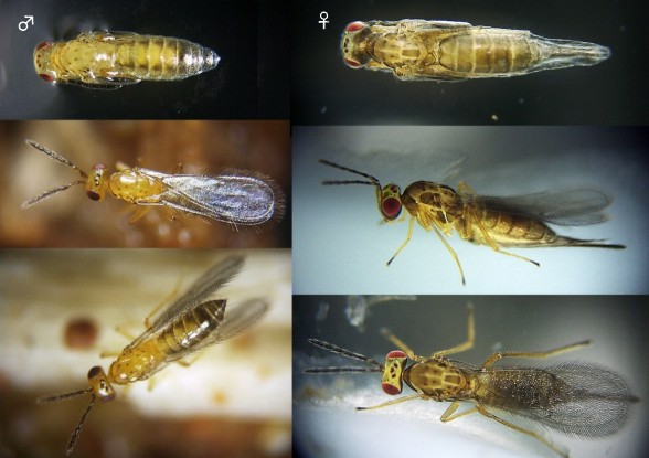 Figure12-4:Eulophidae Size ♂: body length 1.3mm. ♀: body length 1.9mm. The back of the male is yellow. The ovipositor of the female is long. (Standard size)