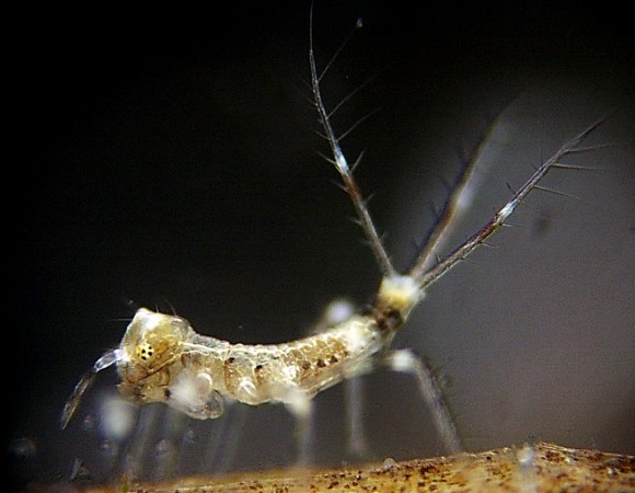| First instar larva The first instar larva of Platycnemis foliacea sasakii is colorful and have the small protrusion with roundness to the head. Size Length:1.22 mm Head width :0.35 mm Length of the antenna :0.38 mm Length of the lateral gill :0.93 mm |