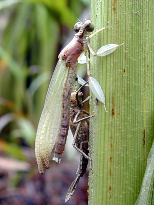 | Emaergence of the male of Platycnemis foliacea sasakii | Exuvia Caudal gill smaller than Copera annulata although it is big |