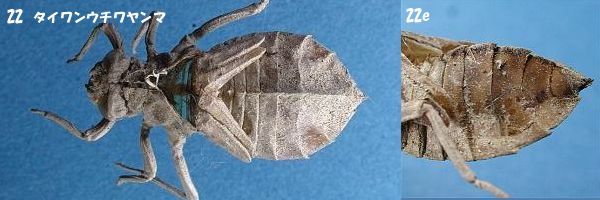22 タイワンウチワヤンマ Ictinogomphus pertinax (Selys) 羽化殻の大きさ約30mm.頭幅8.0mm.腹部最大幅13.0mm.側棘は7-9節にあります.背棘は2-9節にあります.特徴のある形をしています.