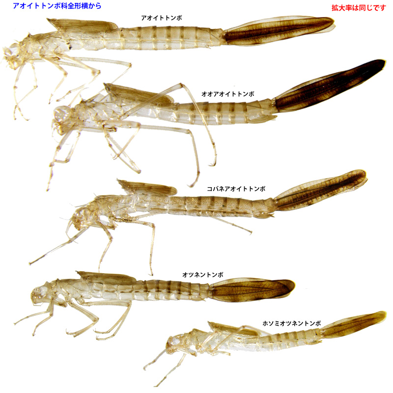 (Ris) 羽化殻の大きさ 全長19.2mm,体長13.0mm,頭幅2.8mm,尾鰓の長さ6.4mm.背棘はありません.小さな側棘が5-9節にあります.