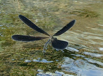 ハグロトンボの卵の変化 ハグロトンボの胚反転の様子はイトトンボ科やモノサシトンボ科と同様で胚反転(長軸方向)するときに,短軸方向にも180度回転します.産卵植物に産卵する卵の向きは決まっていますので,孵化するときには胚の背側が植物表面側にあります.同じカワトンボ科でもカワトンボやオオカワトンボは胚反転(長軸方向)するときに短軸方向には回転しません. |