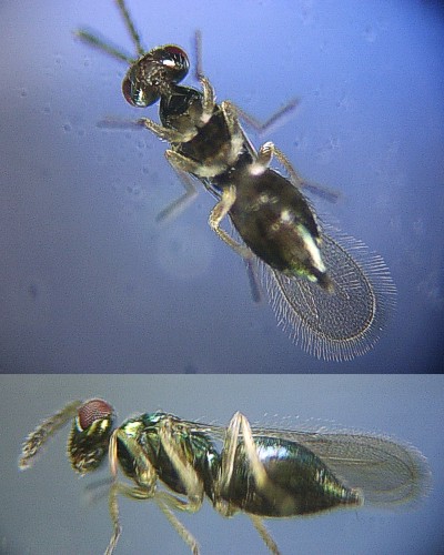 図6-4:ギンヤンマの卵寄生蜂の成虫♀ 大きさと形はアオイトトンボに寄生する卵寄生蜂によく似ています.