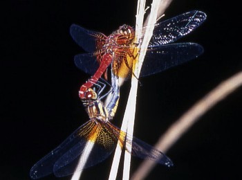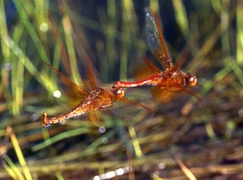 アカネ属.6月中旬から10月下旬まで見られます.近畿地方では全域に分布していますが最近は数が急激に減っています.写真左:♂