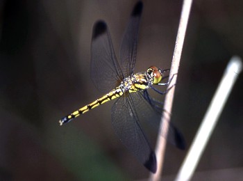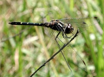 成虫の大きさ4.1cmから4.8cm.羽化殻の大きさ1.7cmから1.9cm.翅の先が黒褐色のアカトンボの中では一番大きいトンボです.雄もそれほど赤くならず黒っぽく見えます.6月から11月下旬まで見られます.近畿地方では全域に広く分布し特に日本海側では数が多いようです.写真